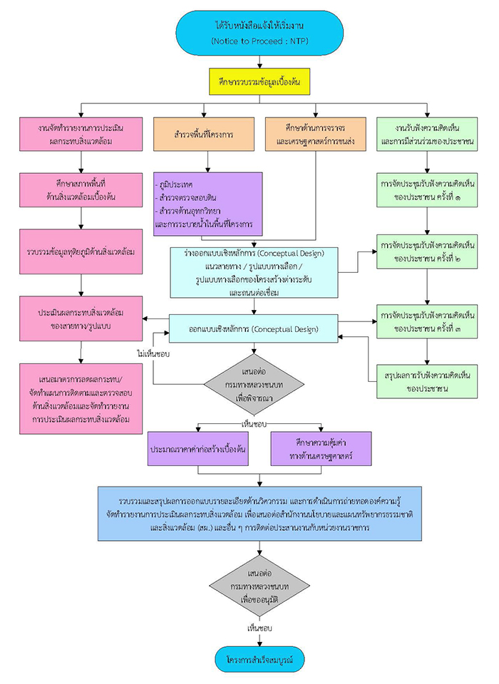 สำนักสำรวจและออกแบบ กรมทางหลวงชนบท จึงมีความจำเป็นที่ต้องดำเนินการจ้างที่ปรึกษา เนื่องจากโครงการดังกล่าวมีลักษณะงานที่มีความซับซ้อนมาก โดยมีลักษณะงานเป็นการศึกษาความเหมาะสมทางด้านวิศวกรรม เศรษฐกิจและการลงทุน สังคมและสิ่งแวดล้อม เช่น การศึกษาด้านจราจร เพื่อนำมาคัดเลือกแนวสายทาง และ/หรือ รูปแบบโครงการเบื้องต้นที่เหมาะสม รวมไปถึงรูปแบบจุดตัด ทางเชื่อม ทางแยก และรูปแบบโครงสร้างสะพานให้มีความปลอดภัยและมีมาตรฐานตามหลักวิศวกรรม และมีความคุ้มค่าในการลงทุน พร้อมทั้งจัดทำรายงานการประเมินผลกระทบสิ่งแวดล้อม |