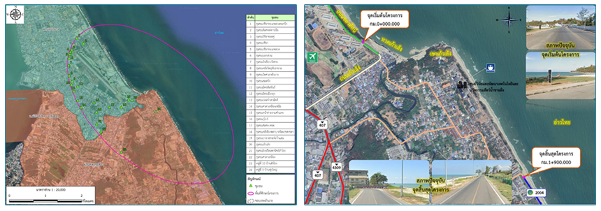 กรมทางหลวงชนบท ได้ตรวจสอบข้อมูลของโครงการในเบื้องต้นพบว่าโครงการดังกล่าวมีความเป็นไปได้ทางวิศวกรรม เศรษฐกิจและการลงทุน แต่พื้นที่ในการดำเนินโครงการอยู่ในพื้นที่ชายฝั่งทะเลในระยะ 50 เมตร ห่างจากระดับน้ำทะเลขึ้นสูงสุดตามปกติทางธรรมชาติ และเป็นที่ตั้งของโบราณสถานที่ขึ้นทะเบียนตามกฎหมาย ซึ่งการดำเนินโครงการดังกล่าวต้องปฏิบัติตามข้อระเบียบและกฎหมายที่เกี่ยวข้อง โดยจะต้องทำการศึกษาและจัดทำรายงานการประเมินผลกระทบสิ่งแวดล้อม ตามประกาศกระทรวงทรัพยากรธรรมชาติและสิ่งแวดล้อม เรื่อง กำหนดโครงการ กิจการ หรือการดำเนินการ ซึ่งต้องจัดทำรายงานการประเมินผลกระทบสิ่งแวดล้อม และหลักเกณฑ์ วิธีการ และเงื่อนไขในการจัดทำรายงานการประเมินผลกระทบสิ่งแวดล้อม (ฉบับที่ 2) พ.ศ. 2568 รวมทั้งหลักเกณฑ์ วิธีการ ระเบียบ และกฎหมายอื่น ๆ ที่เกี่ยวข้อง